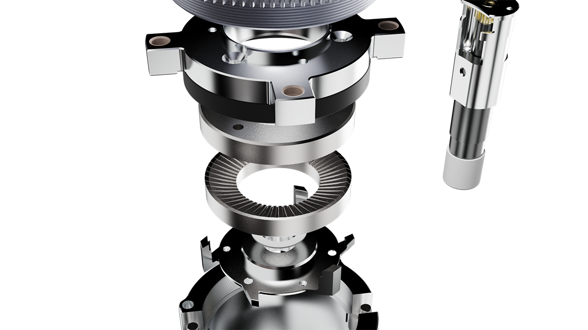 For whatever type of coffee, the new grinder ensures that every cup of coffee is crafted with optimal grind size and uniformity, delivering an unparalleled taste experience. A linear rod guide-rail system makes the Z-axis movement effortlessly accessible, while the XY movement is entirely constrained. The design ensures a high precision between the moving and stationary burr.