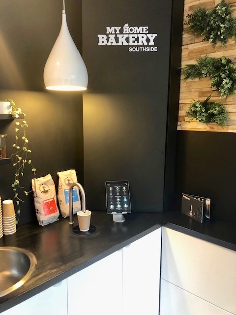 (My Home Bakery) My Home Bakery select TopBrewer with dual-milk fridge to serve premium coffee with non-dairy drink options.