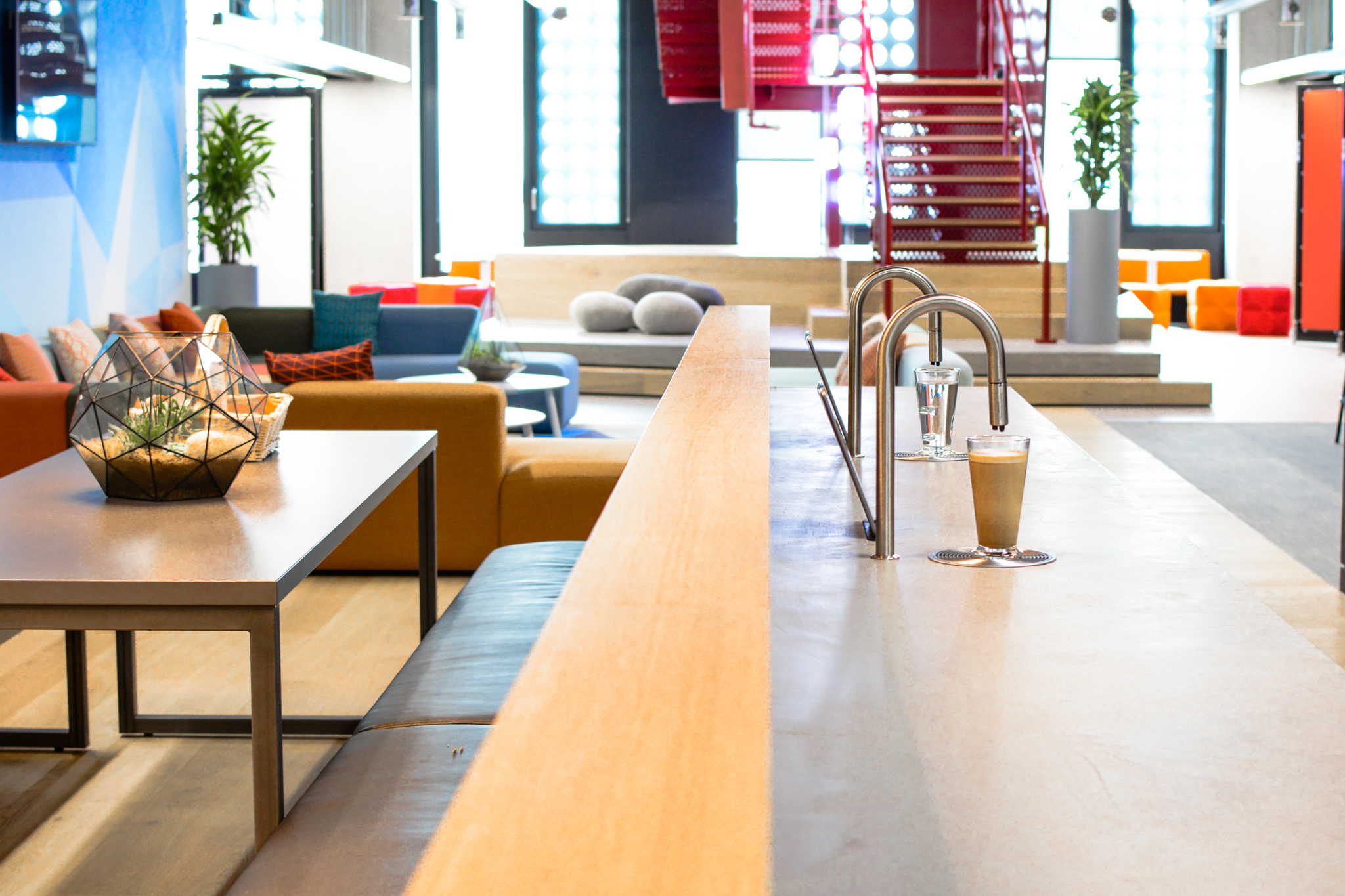 An important element of the design was the introduction of ‘third spaces’ to encourage spontaneous collaboration and social interaction. Within these spaces, TopBrewer coffee machines are installed in the kitchen areas as an enabler of chance conversations and to provide premium refreshment facilities.
